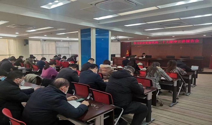 為深入學習貫徹黨的二十大精神,切實把集團黨員干部職工的思想和行動統一到會議精神上來,按照省國資委及集團黨委的工作安排,12月30日下午,國富投資集團在18樓大會議室組織召開黨的二十大精神宣講報告會,集團公司黨委書記、董事長王廣田結合自己的工作實際和學習體會宣講了黨的二十大精神,集團公司黨委委員、各支部書記及駐石工作的干部職工近60人參加了學習。