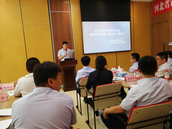 河北省證券期貨業(yè)協(xié)會(huì)2018年第四期主題沙龍活動(dòng)于6月5日下午在廊坊市舉行。此次沙龍的活動(dòng)主題為“加強(qiáng)合規(guī)展業(yè)意識(shí),做好投資者適當(dāng)性管理”。本次沙龍活動(dòng)共計(jì)有29家證券期貨基金經(jīng)營(yíng)機(jī)構(gòu)(24證券機(jī)構(gòu)、3家期貨機(jī)構(gòu)、1家基金公司、1家資本管理公司)的負(fù)責(zé)人(代表)參加。公司營(yíng)業(yè)部作為協(xié)會(huì)會(huì)員單位應(yīng)邀參加了此次活動(dòng)。